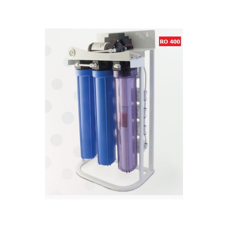 RO 400 Reverse Osmosis Su Arıtma Cihazı Günde 1520 litre kapasitelidir . Ekonomik olan RO 400 ticari iş yerleri uygulamaları için geliştirilmiştir. İmalathaneler, Kafeler, Yemekhaneler, yurtlar, restoranlar, gıda endüstrisi, alışveriş merkezleri, okullar ve oteller için de uygundur. RO 400 suyun hem tadını, hem de kalitesini arttırır.